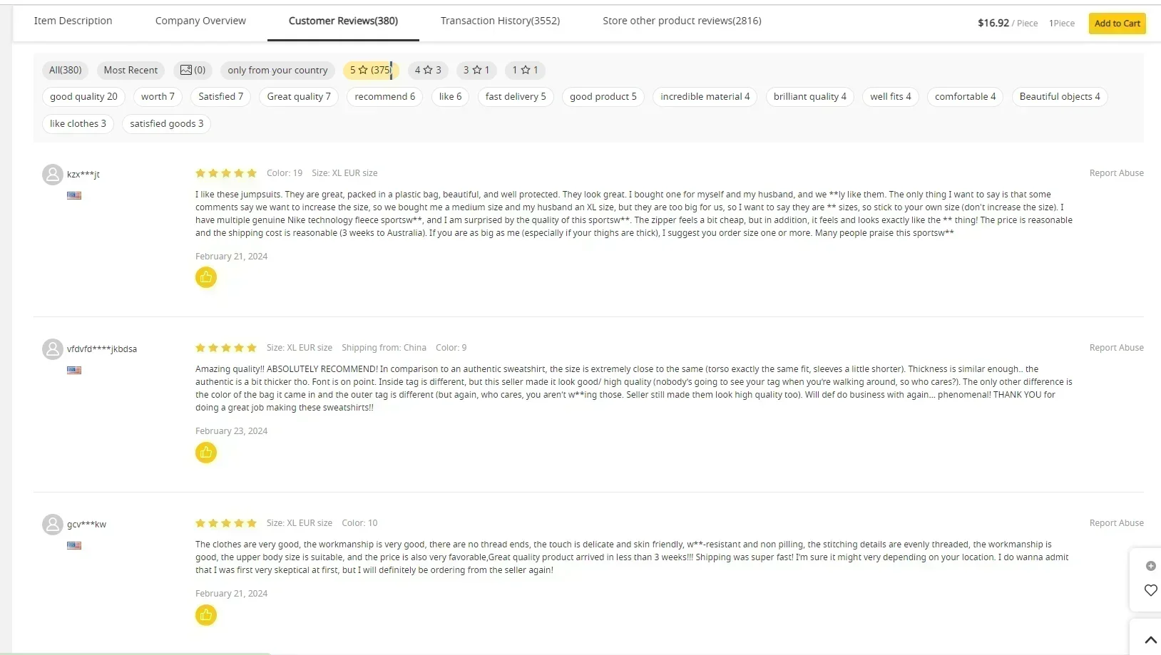- Thickness: Cotton Liner